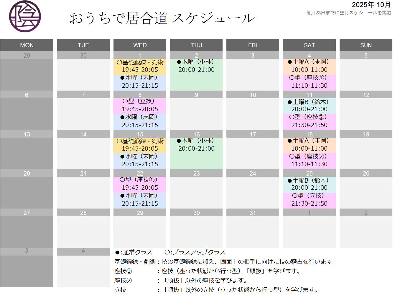 10月も”おうちで居合道”が皆様にとって有意義なものになるよう、スタッフ・講師一同努めて参りますので、何卒よろしくお願いいたします。