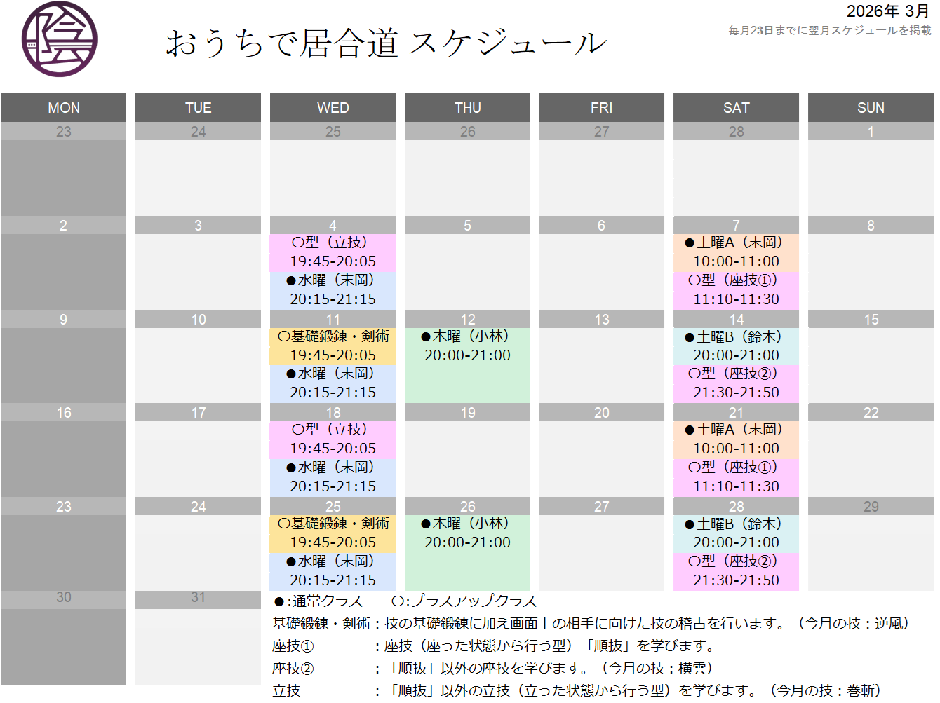 3月も”おうちで居合道”が皆様にとって有意義なものになるよう、スタッフ・講師一同努めて参りますので、何卒よろしくお願いいたします。